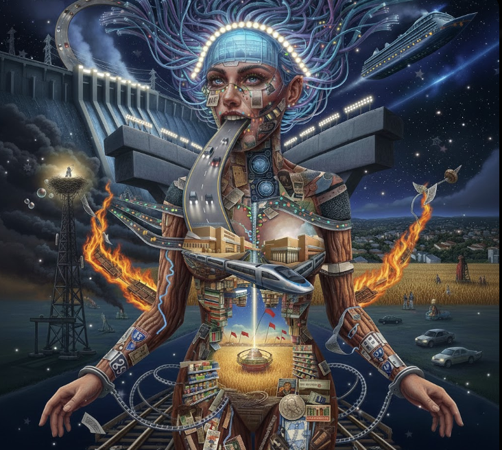 With arms of Mississippi tributaries and of a thousand assembly lines