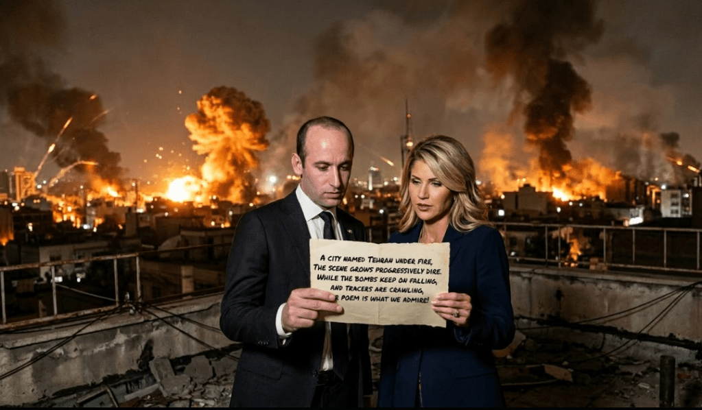 Now Hormuz is choked, your bluff quickly called, the oil lanes are dark, all shipments are stalled, tankers now stopped, your plan just a joke! A world economy— soon bankrupt and broke!